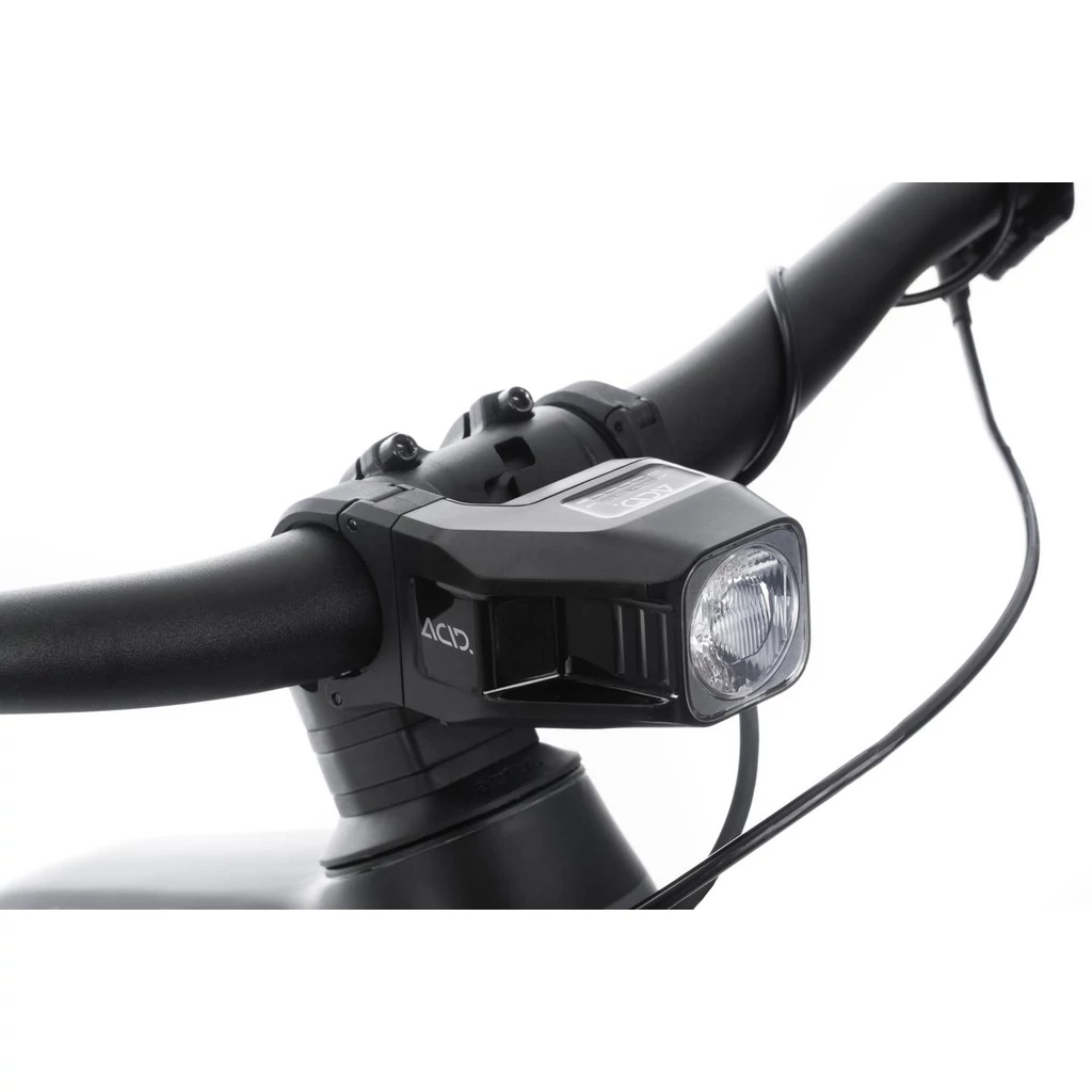| Stílusos, biztonságos és hatalmas erő: így gurulunk! Az ACID LED Front Light PRO 80 megfelel a német közúti közlekedési szabályoknak (StVZO), integrált újratölthető lítium-polimer akkumulátorral rendelkezik, és fröccsenésálló a rendszerindításkor. Az aszimmetrikus kialakítás lehetővé teszi a központi elhelyezést, hogy fenntartsa a letisztult kinézetet. Tartsa szemmel a töltöttséget a 4 különböző fénybeállítással és egy akkumulátorjelzővel. Az összeszerelés a Slide-Lock kormányrögzítési rendszerrel egyszerű – nincs szükség szerszámra. A töltés pedig rendkívül egyszerű a Micro-USB töltőkábellel. | |