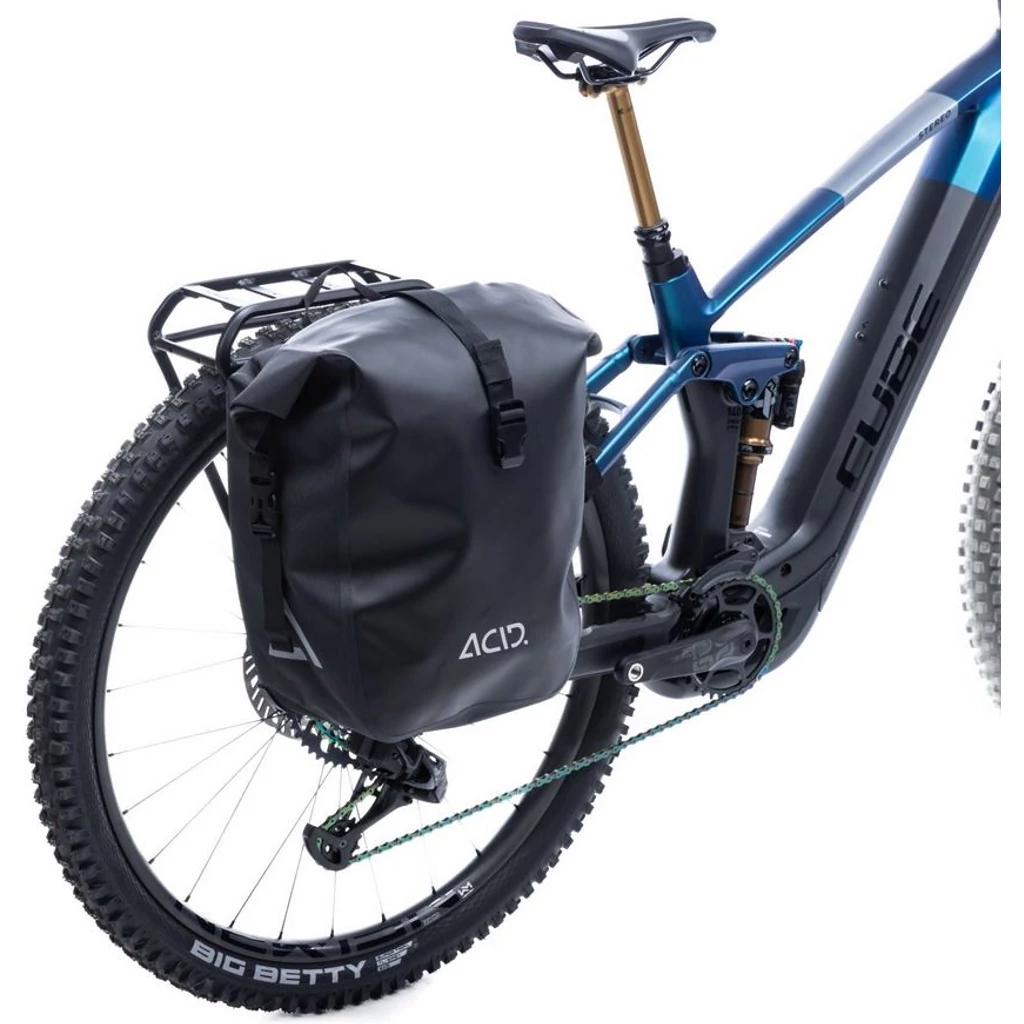 Innovatív csomagtartó frissítés a teljes felfüggesztésű CUBE kerékpárokhoz. Az ACID FULL SUSPENSION csomagtartót a CUBE Stereo Hybrid 140 és 160 típusú kerékpárokhoz optimalizálták a 2020-as modellévtől kezdve, és hevederekkel és speciális hátsó tengellyel rögzíthető. Kompatibilis az ACID termékek széles választékával, beleértve a lámpákat, reflektorokat, hevedereket és RILink táskákat és kosarakat, valamint ACID táskákat, szerszámokat és még sok mást.