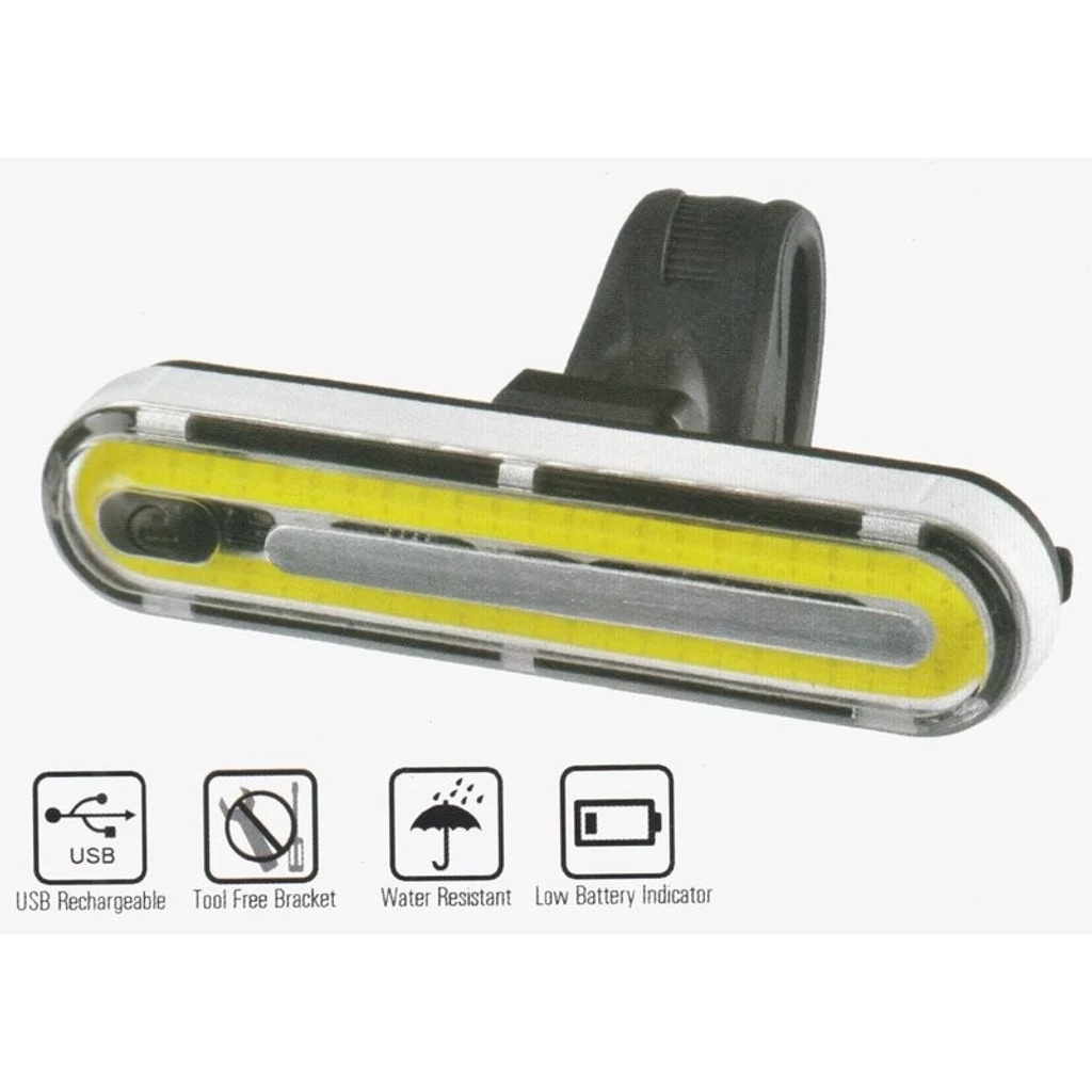 Funkció: 4 fényerrősség (normál-közepes-magas) , 4 mód (lassú villogás gyors villogás, állandó fény) Gumipántos rögzítés Vizálló Beépített akkumlátorral Micro USB-vel tölthető (tartozék) Töltési idő: 3 óra |
