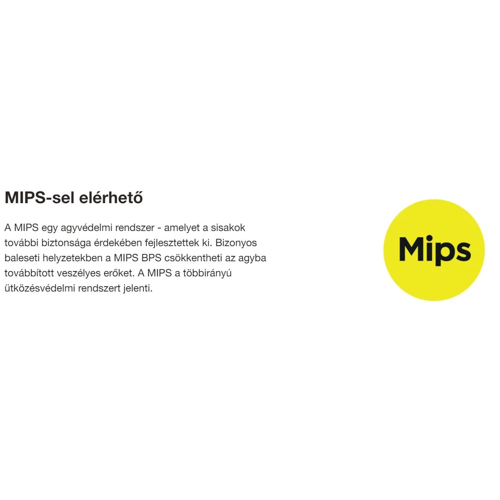 Az elmúlt években a MIPS technológiát számos kerékpáros, sí- és snowboard sisakban találták, és ez a legjobban elismert sárga kör, amelynek oldalán „MIPS” van írva, de mi az a MIPS? A MIPS a többirányú ütközésvédő rendszert jelenti, és fő feladata az, hogy csökkentse a forgási erőket, amelyeket bizonyos fejbe ütközések okoznak. Agysebészek és tudósok fejlesztették ki, és bebizonyították, hogy hatékonyan működik az agyra gyakorolt hatás csökkentése érdekében, a fej felé fordított szögek miatt.