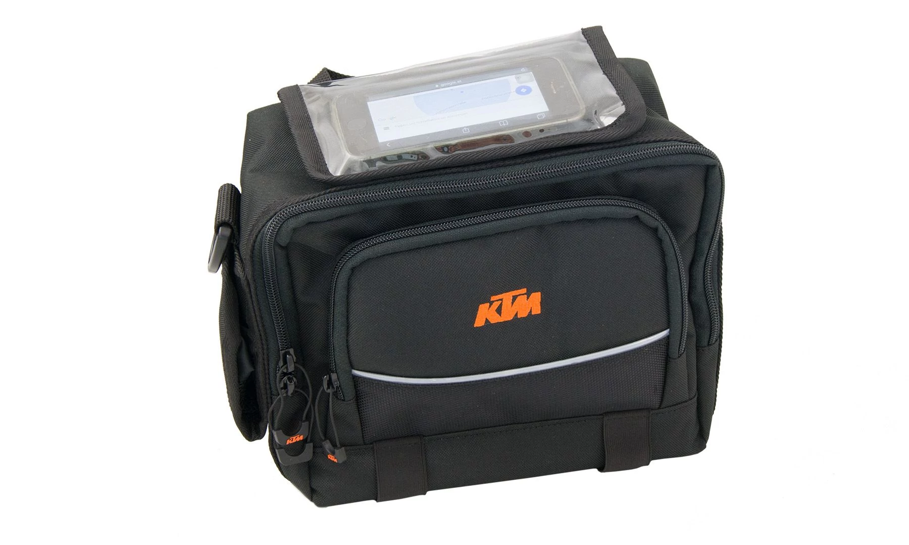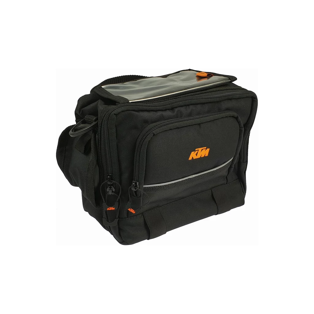 A KTM Europe kormánytáska ideális mindennapi társ hosszú vagy rövid túrákhoz. Számos funkcionális rekesszel, összesen 6 liter űrtartalommal, elegendő tárolóhelyet kínál mindenféle csomaghoz. A Klickfix rögzítő adapternek és hordszíjnak köszönhetően a KTM Europe kormánytáskáját könnyen eltávolíthatja, majd magával viheti a városban. A KTM kormánytáskával Európa-szerte utazhat. Mind a kerékpár kormányon, mind gyalogosan Önnel van. A nagy fő rekeszben elég hely van egy digitális fényképezőgép, felszerelés vagy szerszám számára. A palacktartónak köszönhetően italokat vihet magával könnyedén a túrán is. A kivehető okostelefon-rekesszel , amelyet a kormánytáskához rögzíthet, lehetősége van az útvonal GPS-es követésére. Az okostelefon tokja minden szokásos okostelefonhoz használható, például a Samsung Galaxy S9 vagy az iPhone 8.