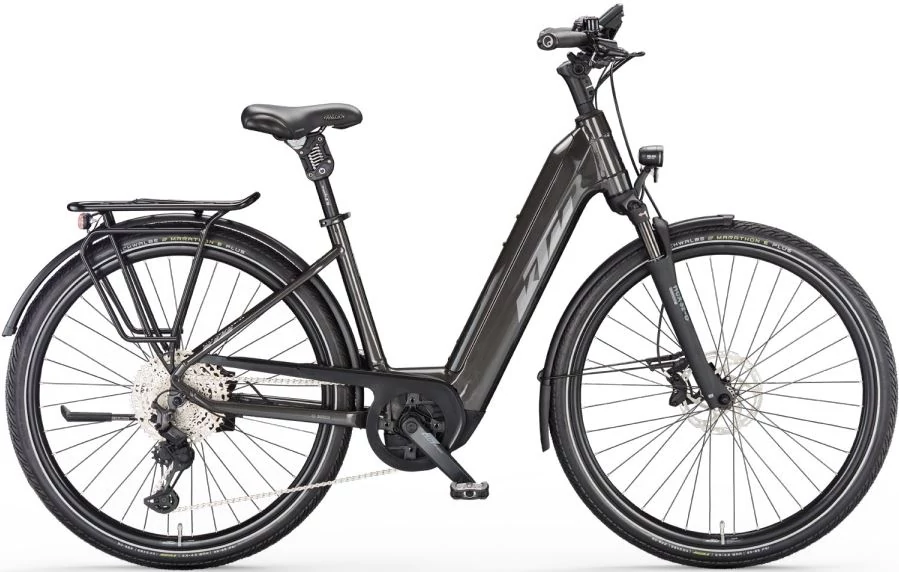 KTM MACINA STYLE XL MACHINE GREY(SILVER+BLACK) EASY ENTRY 2023 UNISEX ELEKTROMOS TREKKING KERÉKPÁR