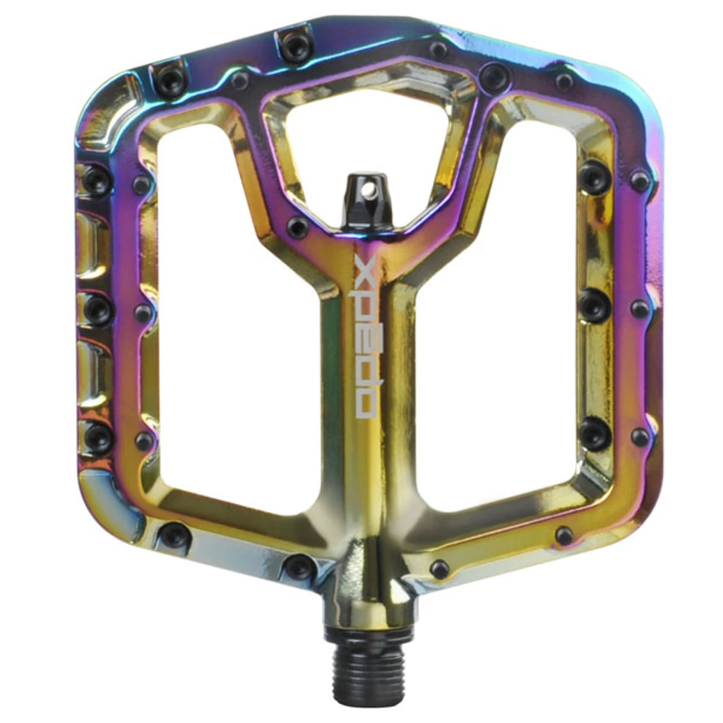 Az új TRIDENT lapos pedál egy szuper alacsony profilú, extra nagy emelvényű pedál, amelyet hegyi, lesiklási vagy piszokugráshoz terveztek. A kovácsolt 6061 alumínium test mérete 114 mm széles és 1 hüvelyk vékony, amely szögletes széleivel rengeteg szabad teret enged. A 48 grub csap kiemelkedő tapadást biztosít a maximális irányítás és a pedál hatékonysága érdekében. Illessze össze kedvenc ragacsos cipőjével, és készen áll arra, hogy minden terepet magabiztosan kezeljen.
